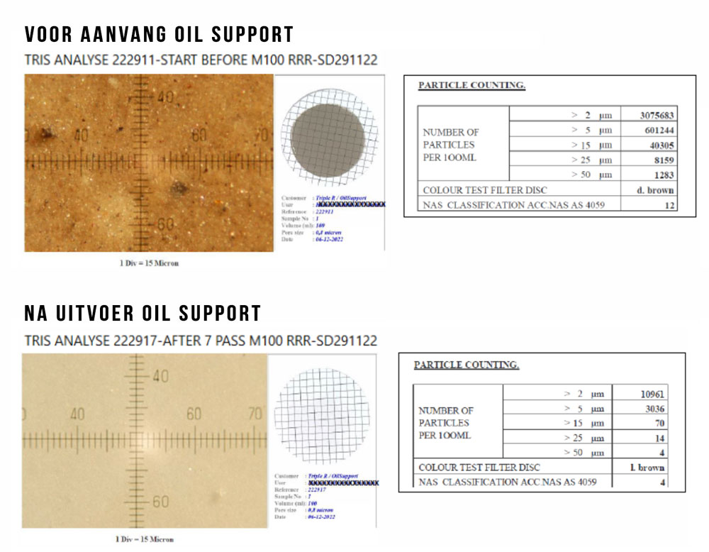 - Begeleiding door onafhankelijk uitgevoerde olieanalyses van verschillende laboratoria