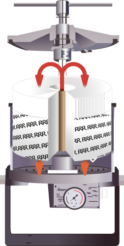Triple R’s gepatenteerde, unieke filterontwerp dwingt de olie door een 114mm (!) dikke filtermassa, bestaande uit 3 verschillende lagen. De grootste deeltjes blijven liggen bovenop, wat overigens een uitstekende analyse geeft van de slijtage in de machine, kleinere deeltjes worden in het midden opgevangen, terwijl de allerkleinste deeltjes <2 micron in het onderste, samengedrukte deel worden opgevangen.